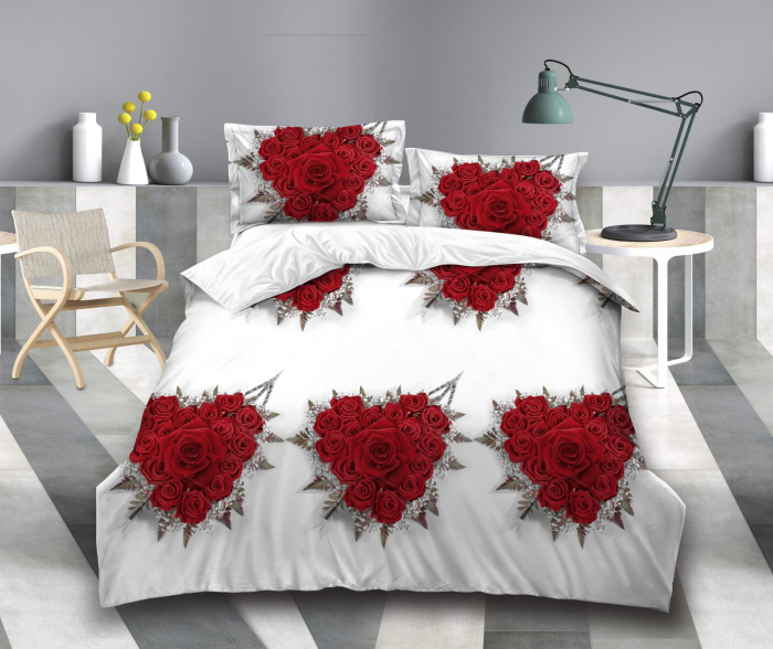 Lenjerie De Pat Bumbac Satinat 3D - Three Hearts