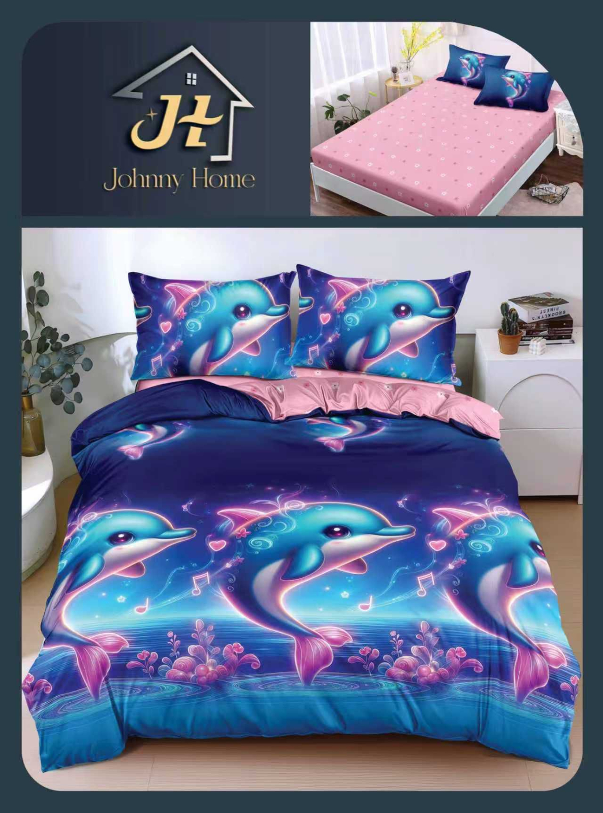 Lenjerie De Pat Bumbac Satinat Cu Elastic - Delfini