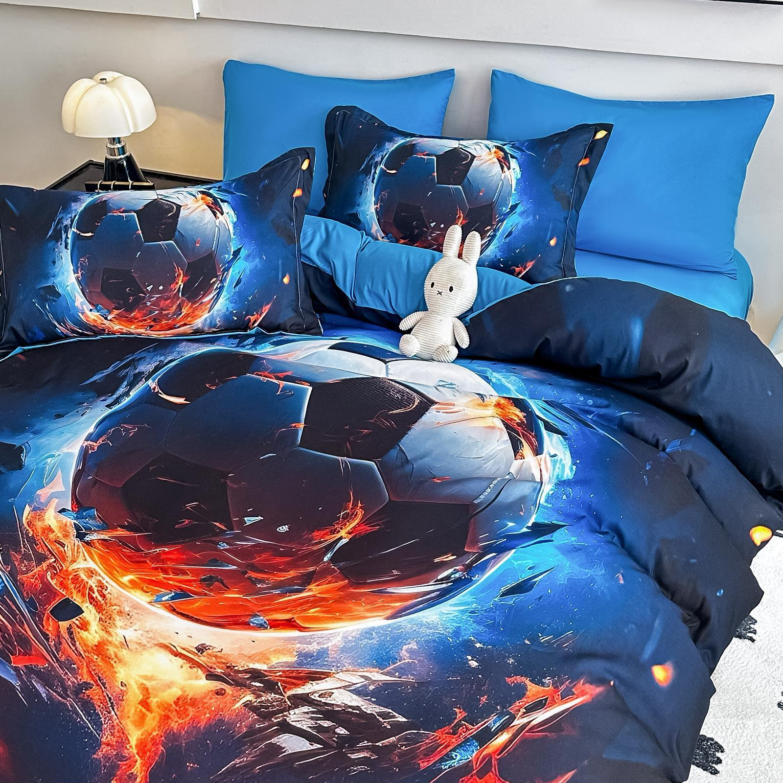 Lenjerie De Pat Finet 4 Piese Cu Elastic 5D 1 Persoana - Minge De Fotbal