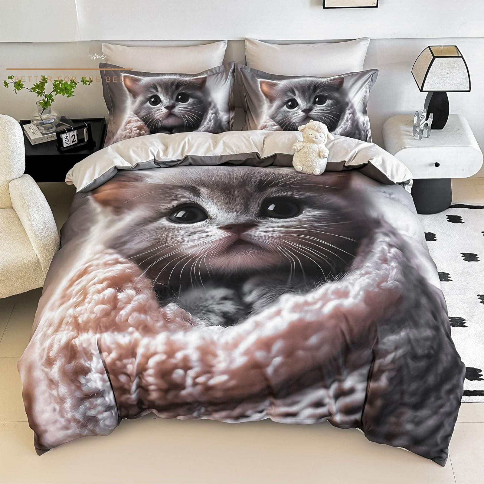 Lenjerie De Pat Finet 4 Piese Cu Elastic 5D 1 Persoana - Pisicuta Invelita
