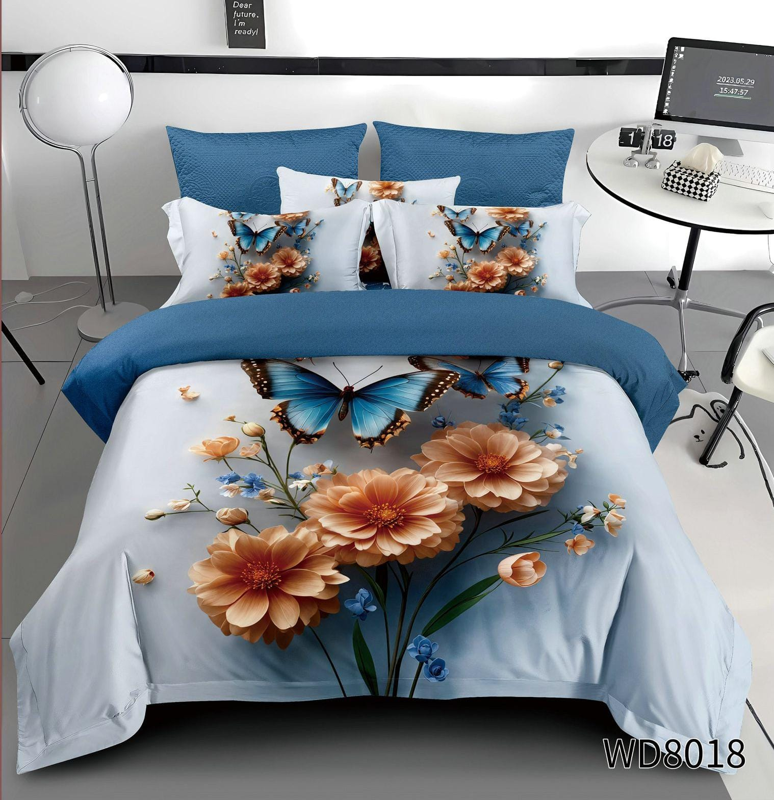 Lenjerie De Pat Finet 4 Piese Cu Elastic 5D In Relief - Buchete De Flori Si Fluturi