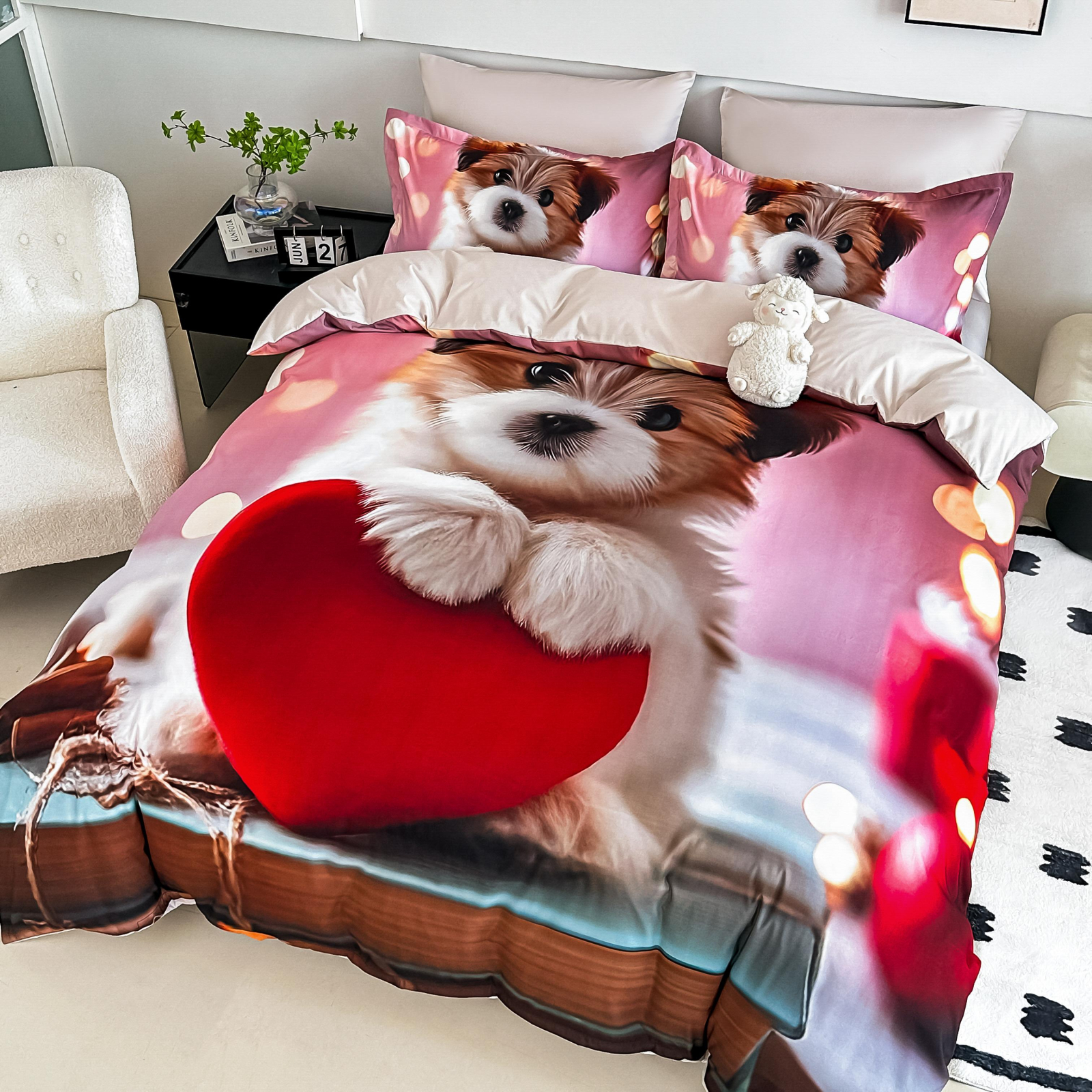 Lenjerie De Pat Finet 6 Piese Cu Elastic 5D - Catelusul Pe Inimioara