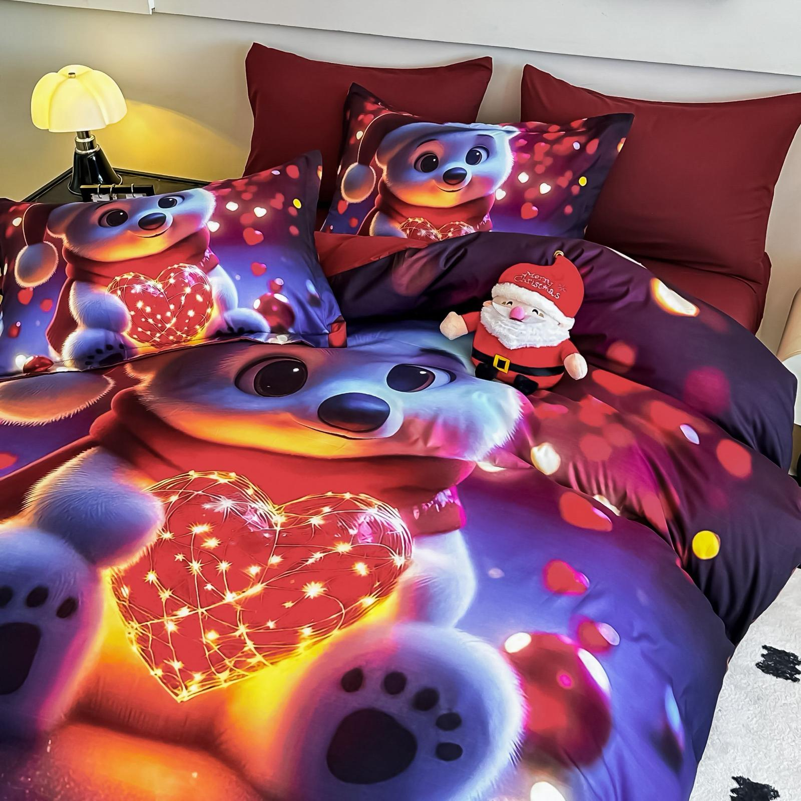 Lenjerie De Pat Finet 6 Piese Cu Elastic 5D Model Craciun - Ursuletul Polar Iubaret