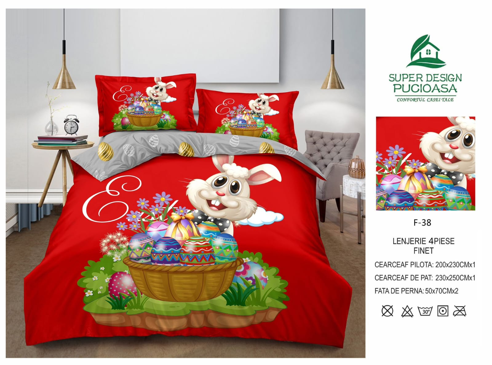 Lenjerie De Pat Finet Paste - Iepurasul Si Cosul Cu Oua