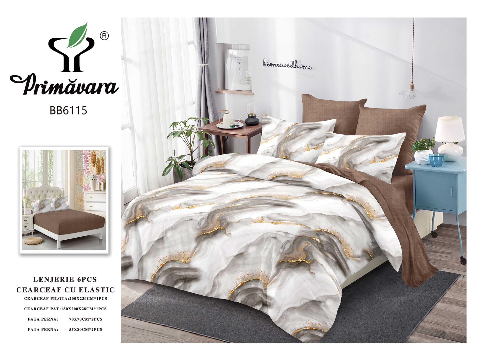 Lenjerie De Pat Finet Cu Elastic - Maro Cu Marmura