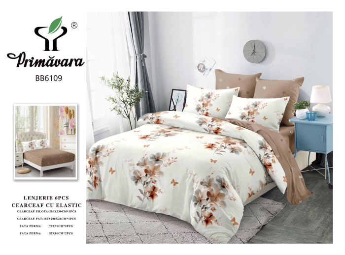 Lenjerie De Pat Finet Cu Elastic - Maro Si Alb Cu Flori