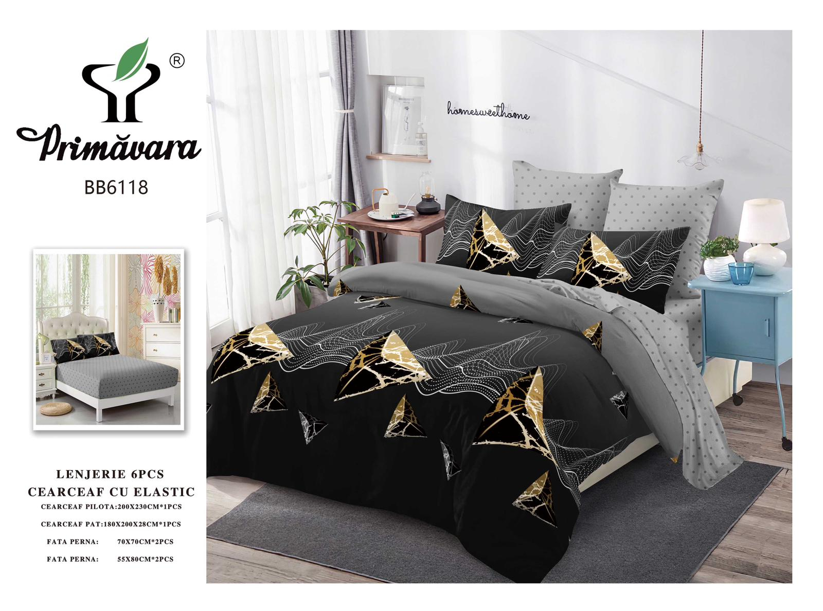 Lenjerie De Pat Finet Cu Elastic - Negru Si Gri Cu Figuri Abstracte