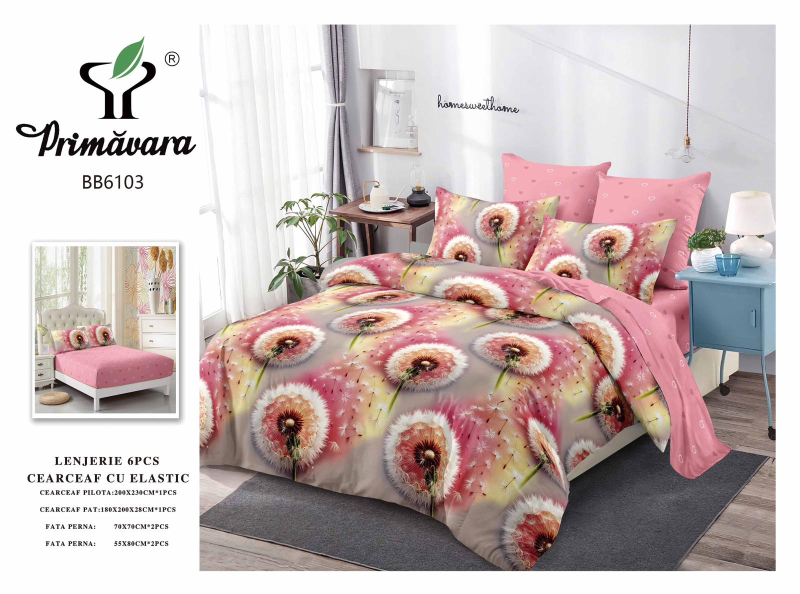 Lenjerie De Pat Finet Cu Elastic - Roz Cu Papadii