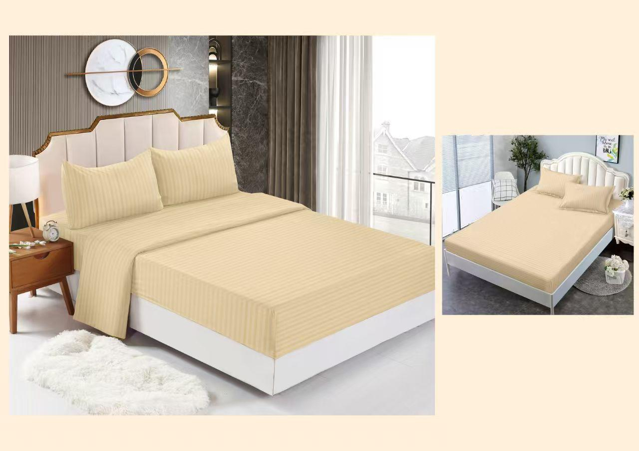 Lenjerie Din Bumbac Tip Damasc Cu Elastic 4 Piese - Bej Cald