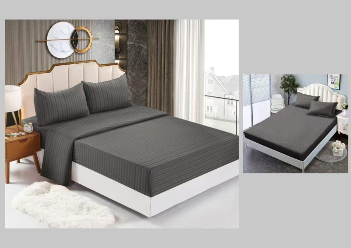 Lenjeria noastră din damasc satinat îți oferă în fiecare seară senzația fină și răcoroasă a unui pat de hotel premium. Textura satinată și dungile clasice transformă dormitul într-o experiență de răsfăț total.