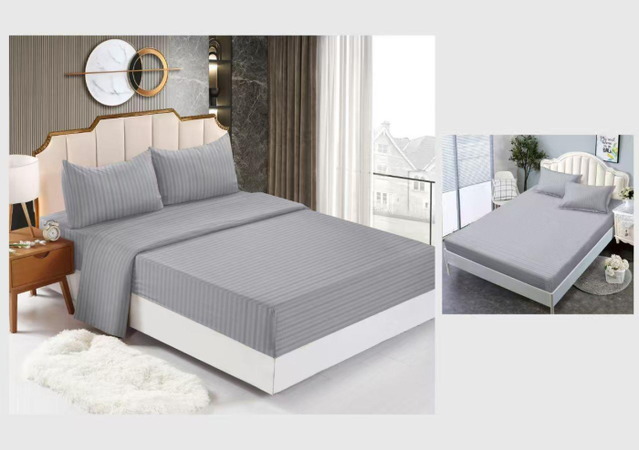Lenjeria noastră din damasc satinat îți oferă în fiecare seară senzația fină și răcoroasă a unui pat de hotel premium. Textura satinată și dungile clasice transformă dormitul într-o experiență de răsfăț total.
