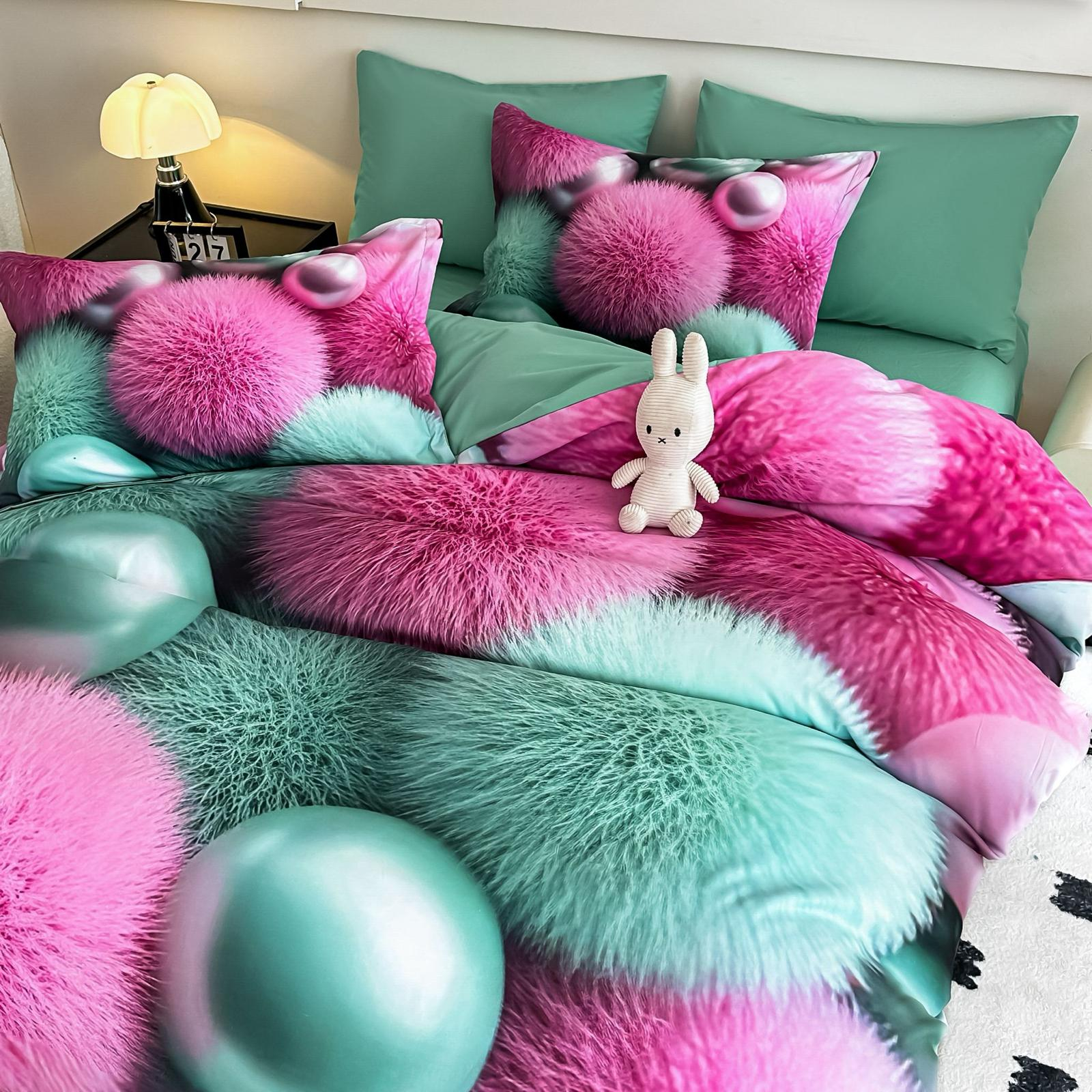 Atat cearceaful pentru pilota, cat si fetele de perna 55x80cm au doua fete - pe o parte au un imprimeu 5D in relief, iar pe cealalta sunt UNI.
