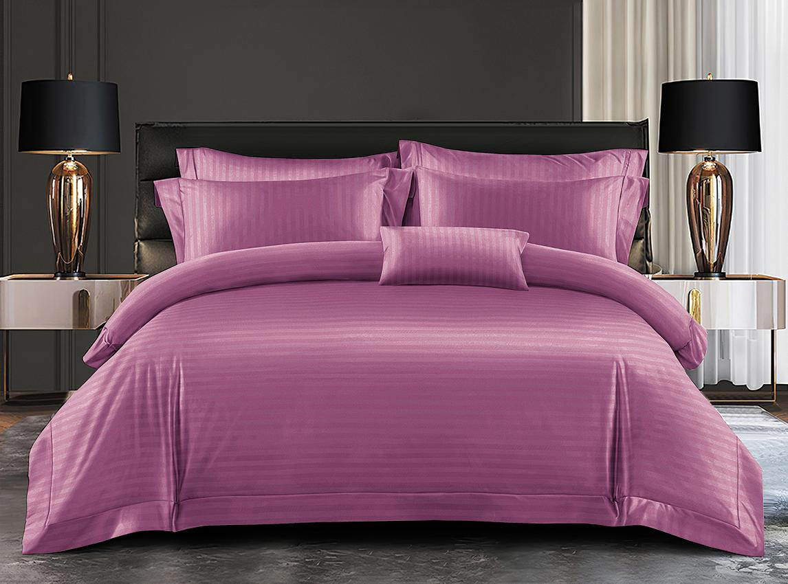 Lenjerie De Pat din Damasc Finetat Cu Elastic Cu Dungi Late - Mov