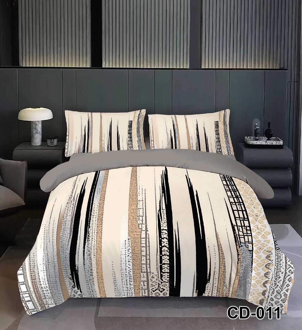 Lenjerie De Pat Finet 4 Piese 5D 1 Persoana - Model Abstract Cu Dungi