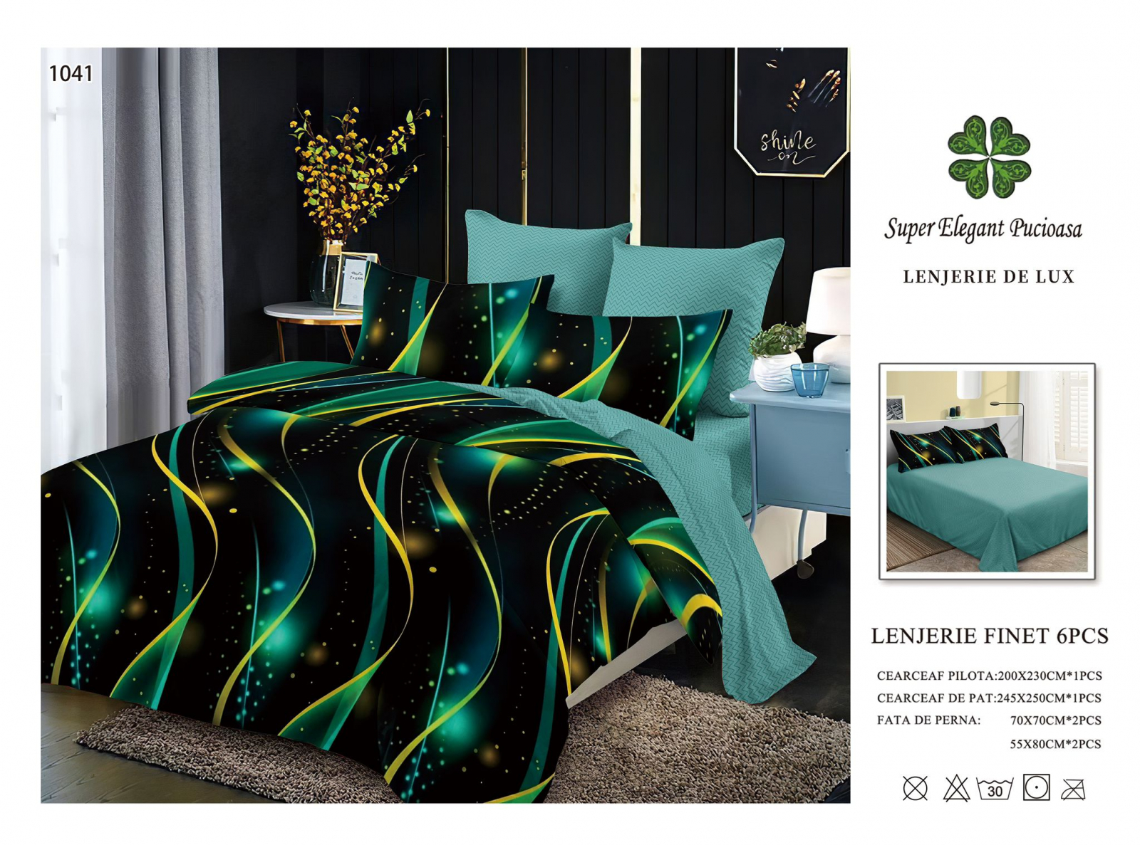 Lenjerii De Pat Din Finet 6 Piese - Verde Diafan