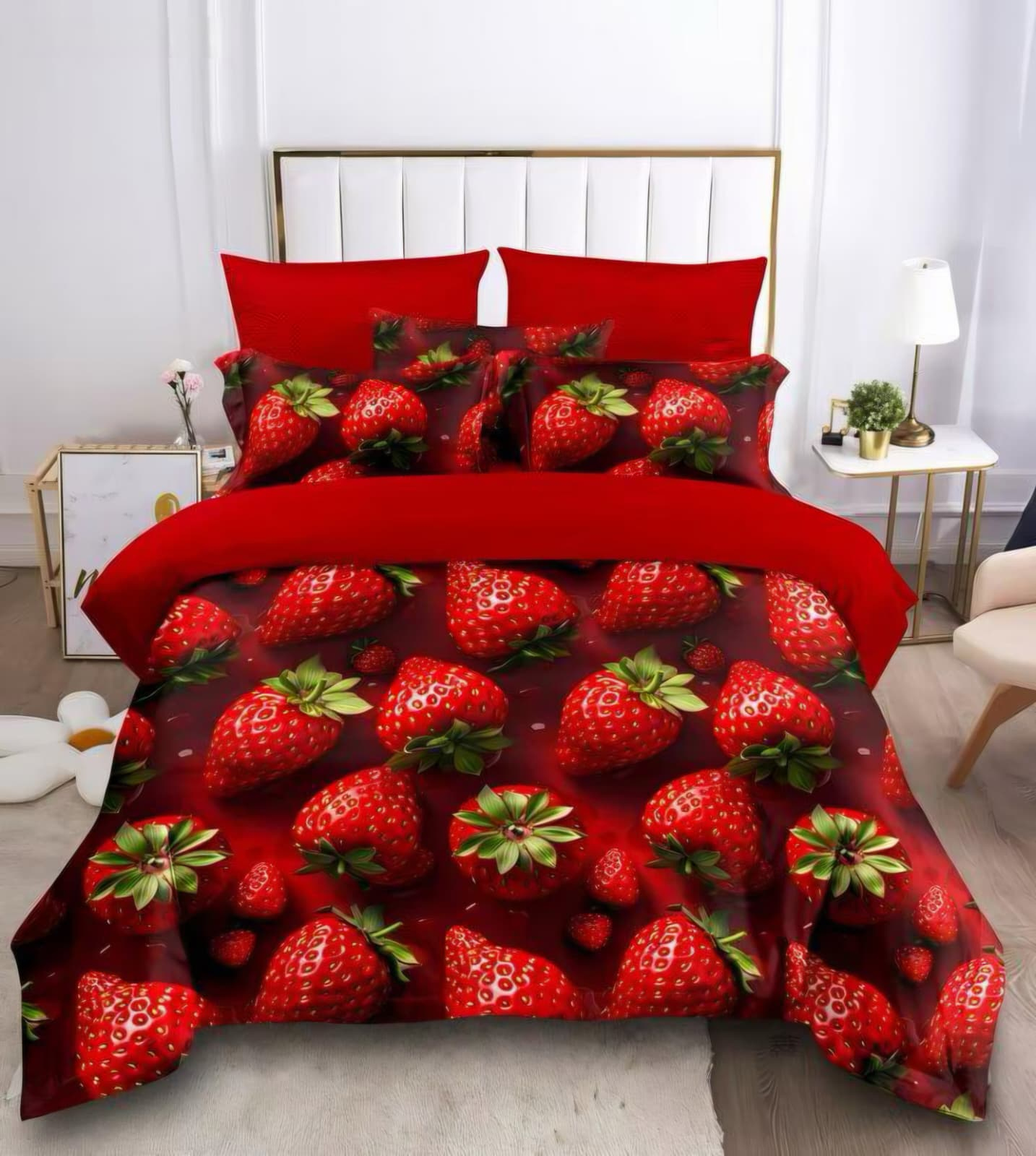 Lenjerie De Pat Finet 6 Piese 5D - Capsuni Gustoase