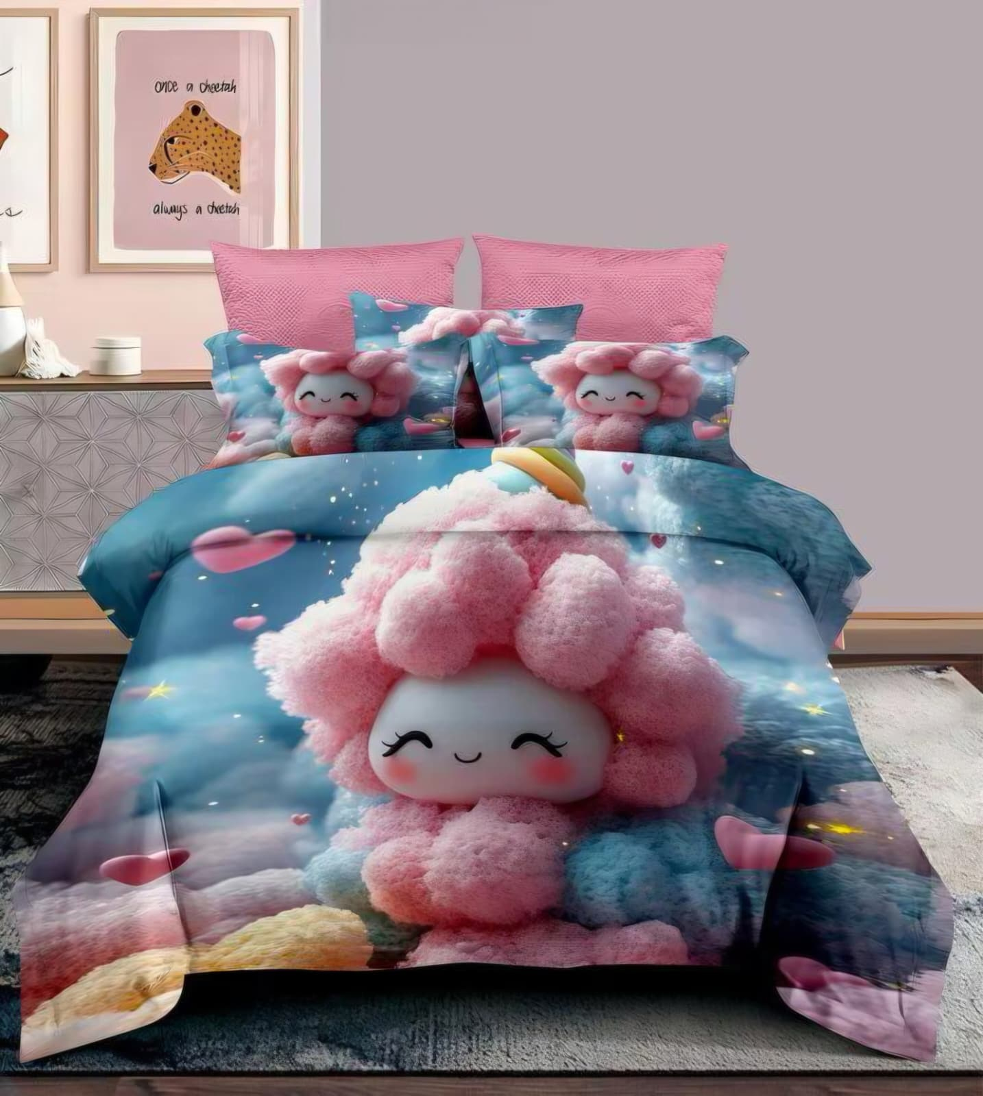 Imprimeurile colorate si jucause sunt atent alese, pentru ca tu sa te bucuri din plin de timpul petrecut in dormitor.
