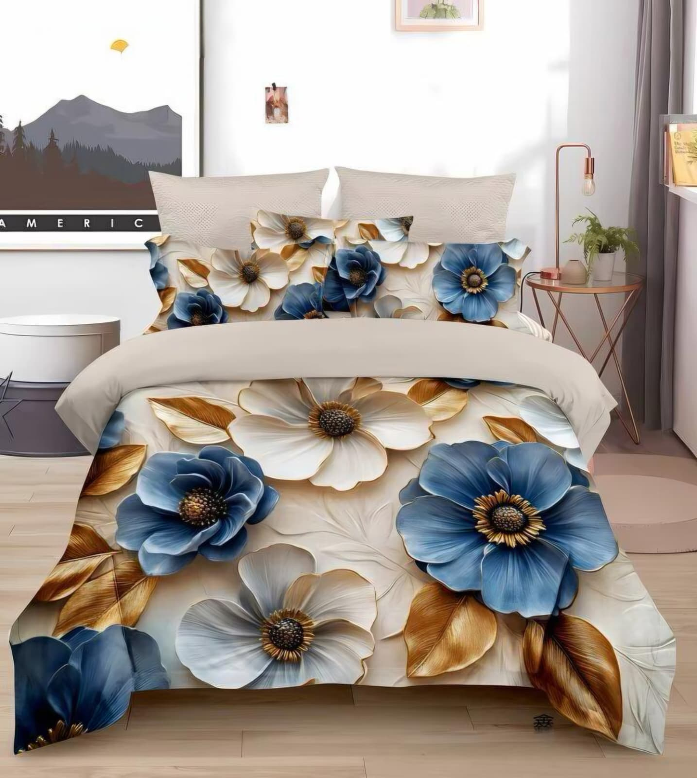 Cearceaful pentru pat si fetele de perna 70x70cm sunt UNI pe ambele parti.