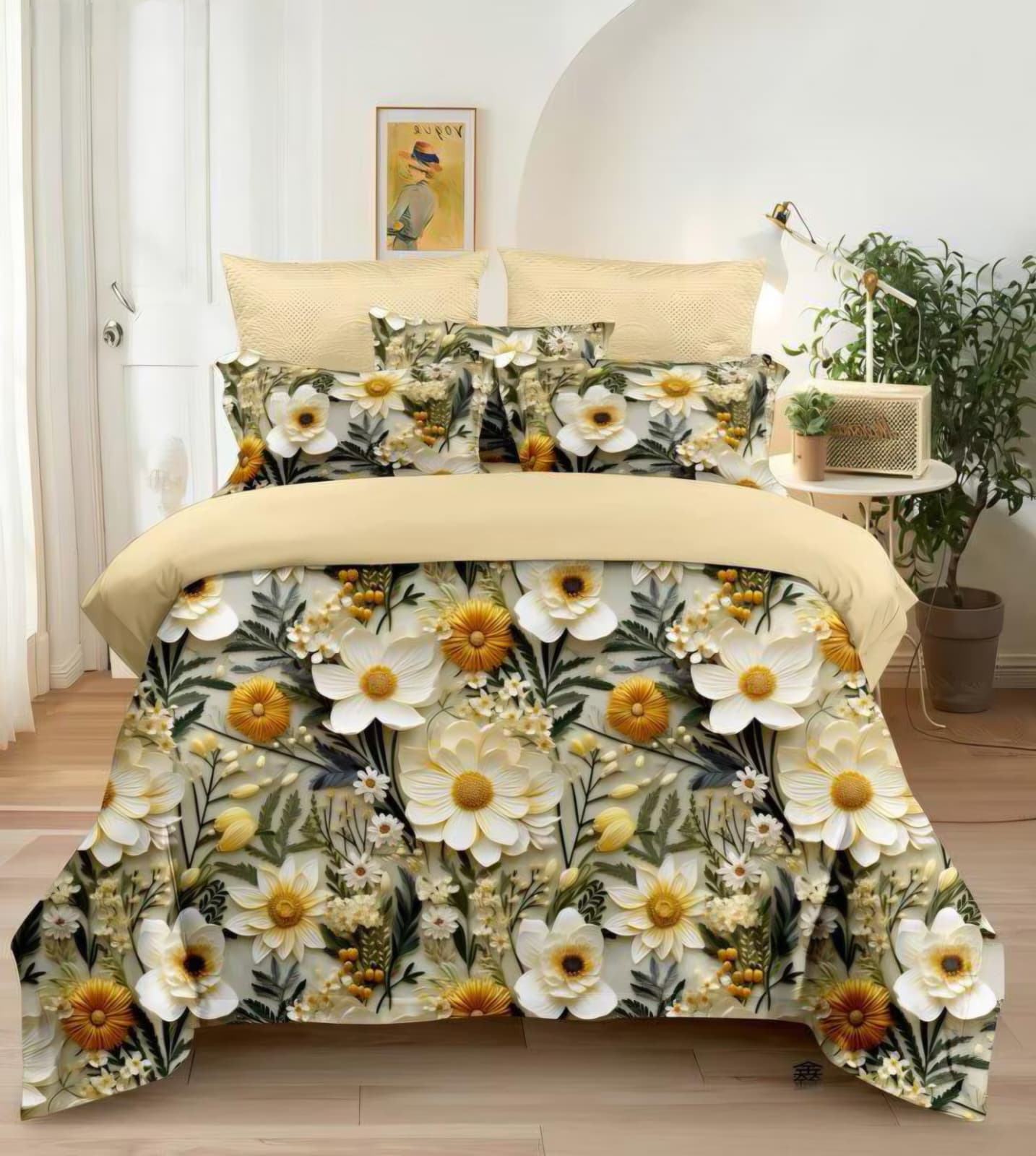 Lenjerie De Pat Finet 6 Piese 5D - Flori Galbene De Camp