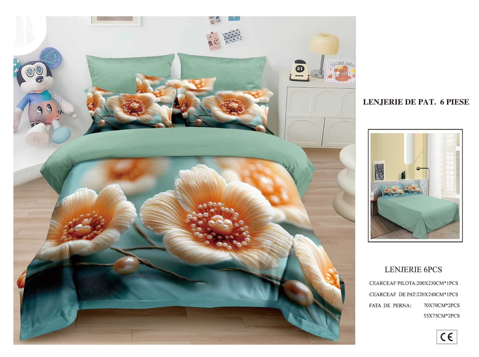 Lenjeria de Pat din finet cu 6 piese este moale și plăcută la atingere și are imprimeuri 5D în relief vesele și colorate . Setul aduce un plus de confort și energie pozitivă în dormitor, iar modelele sunt identice cu cele din poza de prezentare, pentru ca tu să te bucuri exact de designul ales.
