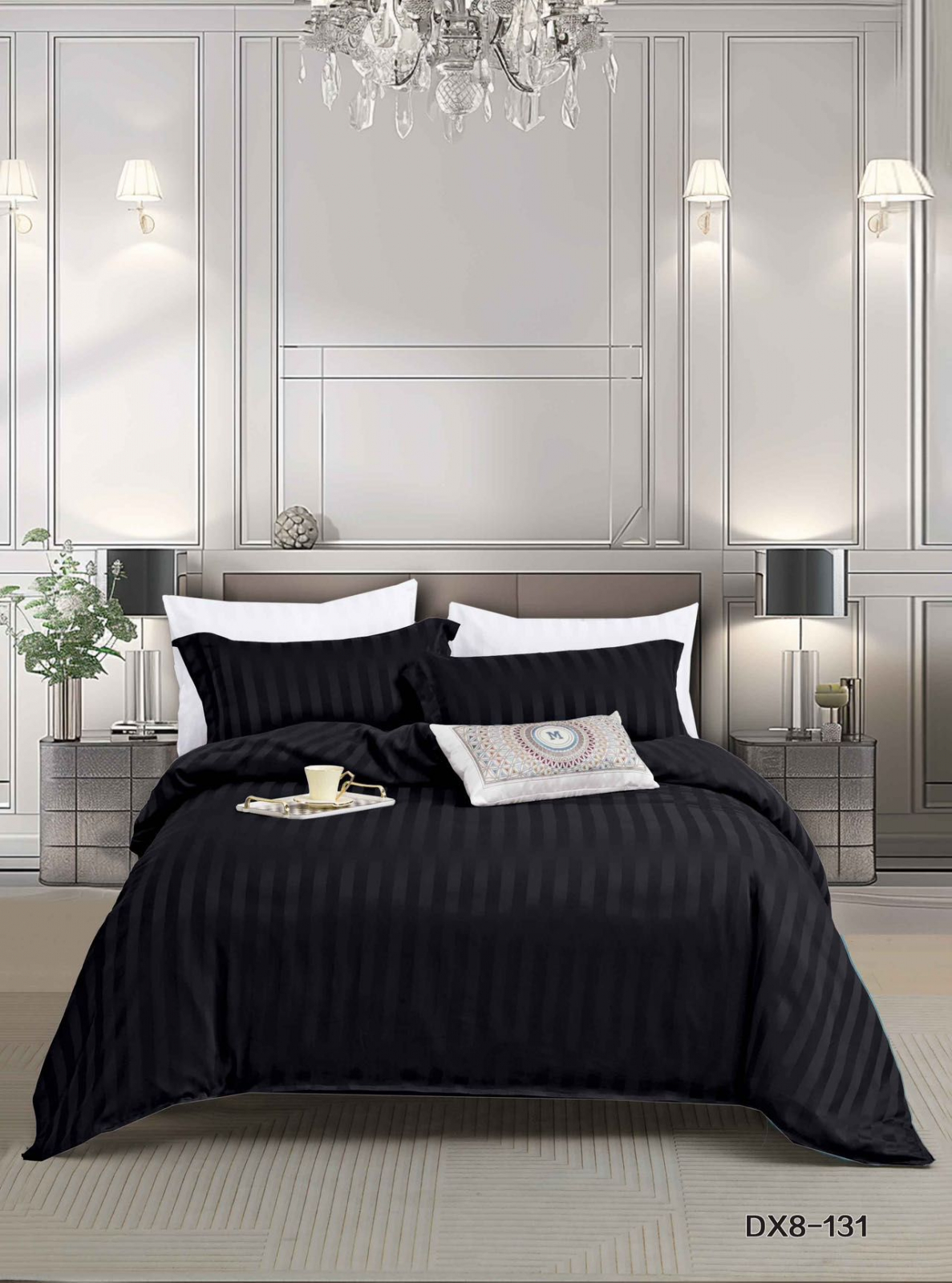 Lenjerie Din Bumbac Tip Damasc 1 Persoana Cu Elastic - Negru