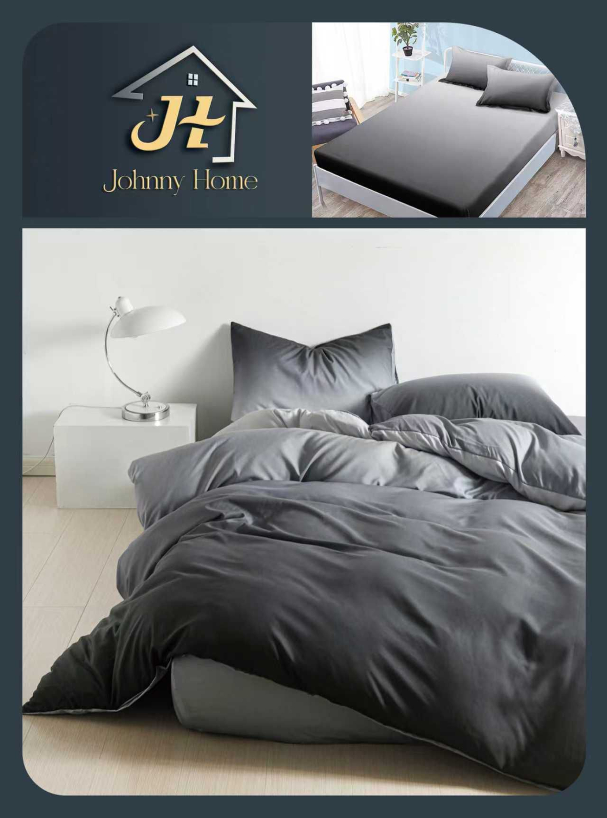 Lenjerie De Pat Bumbac Satinat Cu Elastic - Bicolor Gri Inchis