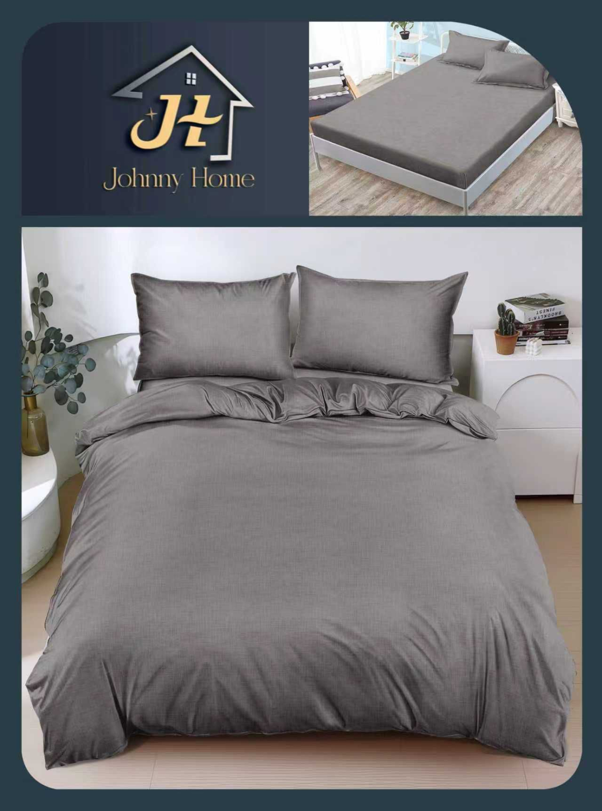 Lenjerie De Pat Bumbac Satinat Cu Elastic - Gri