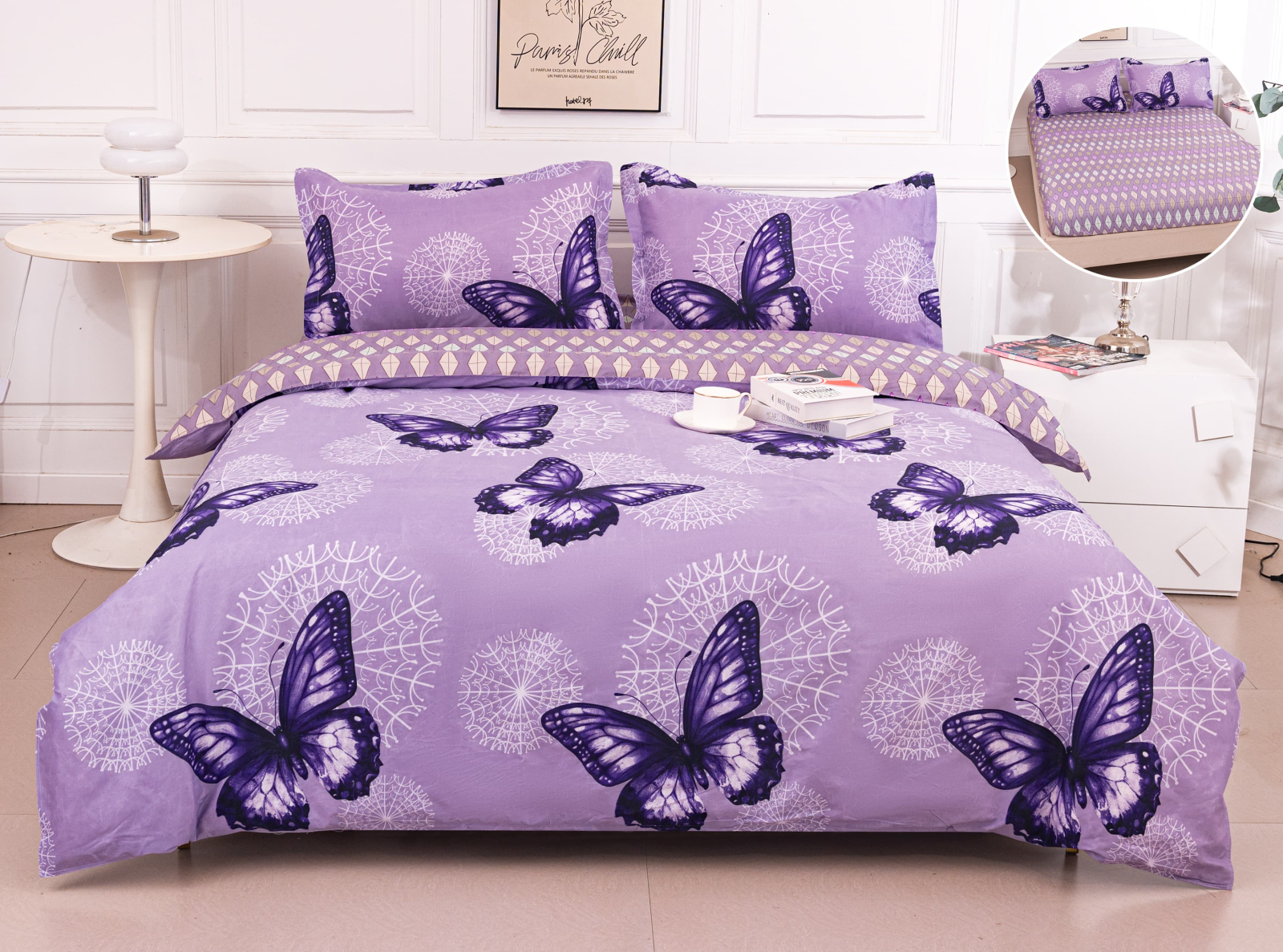Lenjerie Din Bumbac Satinat Cu Elastic 4 Piese - Mov cu Fluturi Abstract
