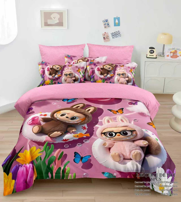 Dacă te trezești morocănos, e clar că nu dormi cu cine trebuie. Această lenjerie cu Labubu este aici să-ți amintească în fiecare dimineață că viața e mai frumoasă când ai urechi lungi și un zâmbet de la o ureche la alta. Moale, colorată și gata de un maraton de seriale sau un somn odihnitor.