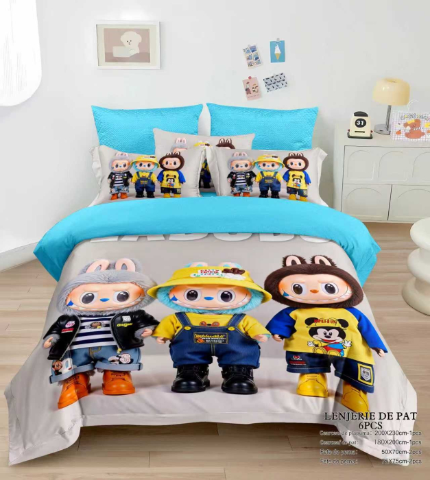 Dacă te trezești morocănos, e clar că nu dormi cu cine trebuie. Această lenjerie cu Labubu este aici să-ți amintească în fiecare dimineață că viața e mai frumoasă când ai urechi lungi și un zâmbet de la o ureche la alta. Moale, colorată și gata de un maraton de seriale sau un somn odihnitor.