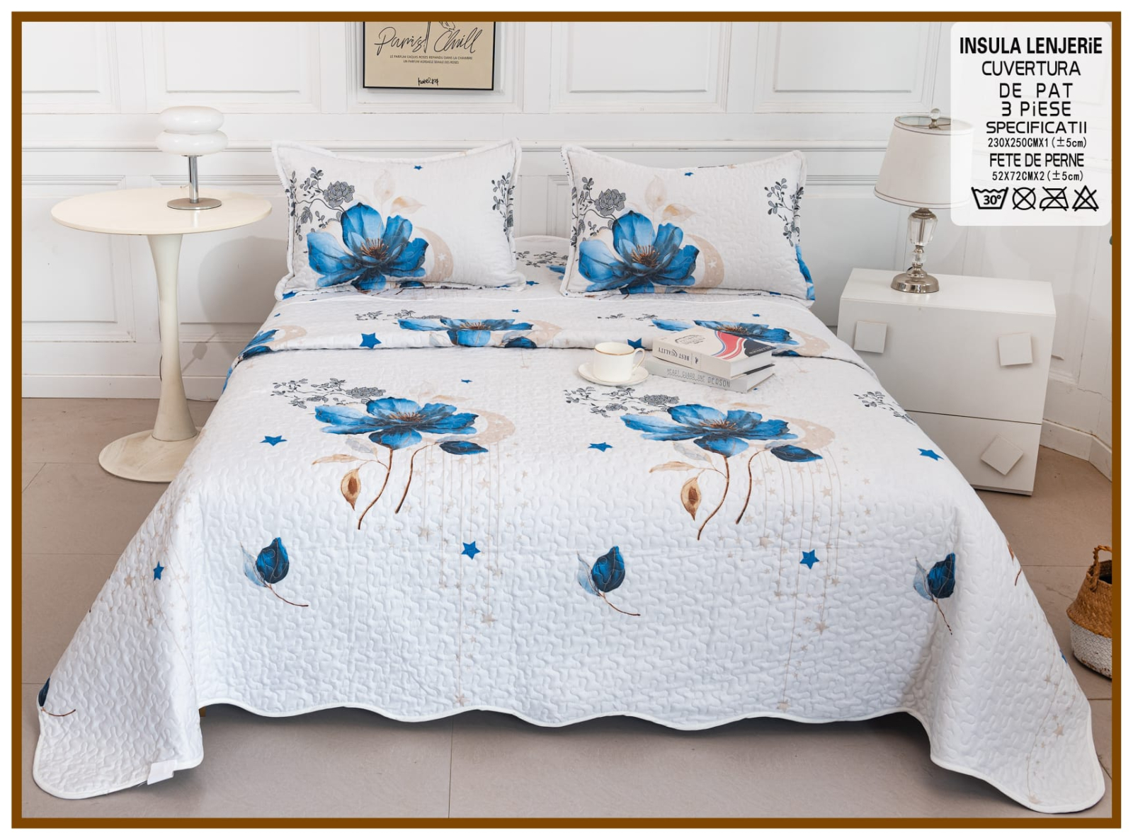 - cuvertura 230x250cm - două fețe de pernă 60x80cm