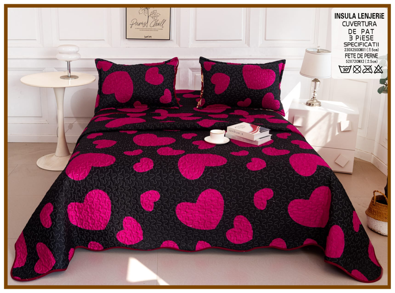 - cuvertura 230x250cm - două fețe de pernă 60x80cm