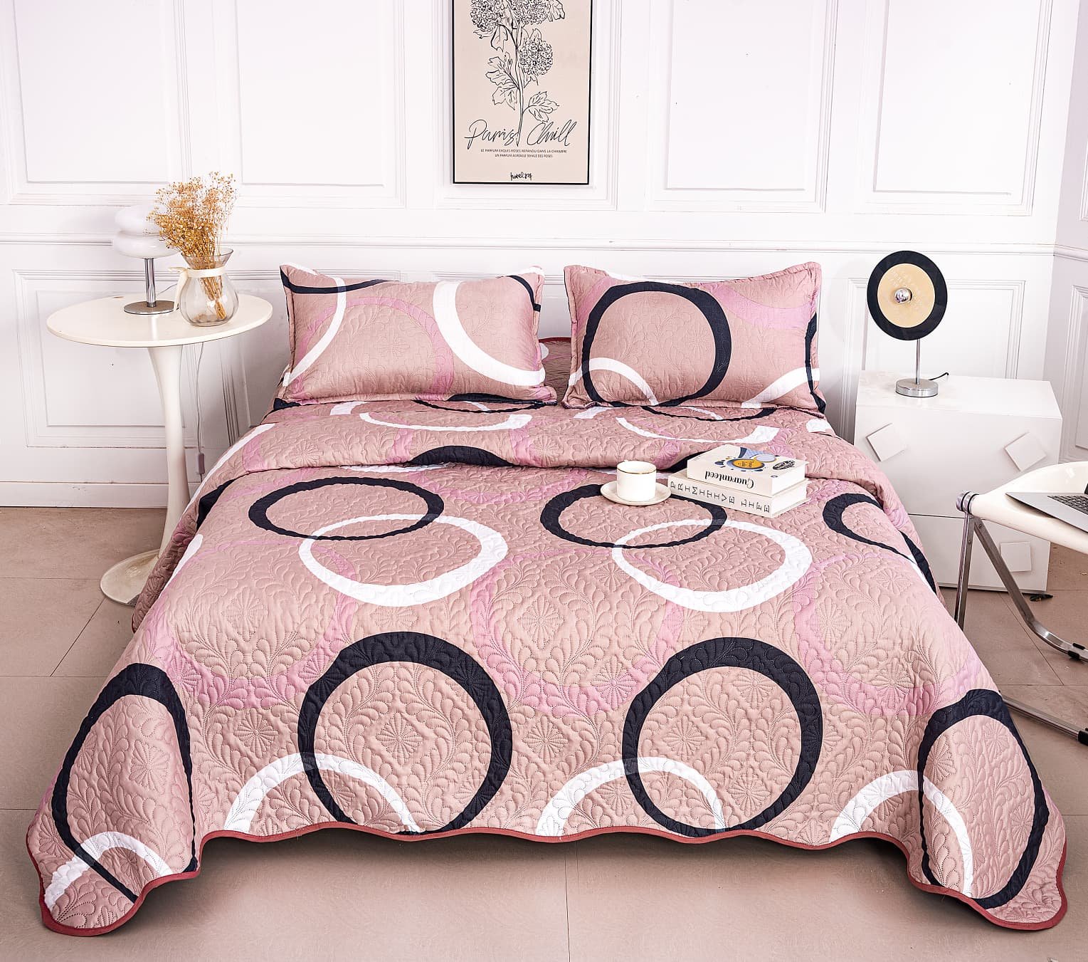 Cuvertura Din Bumbac Matlasat Cu Doua Fete - Roz Pudrat Cu Cercuri