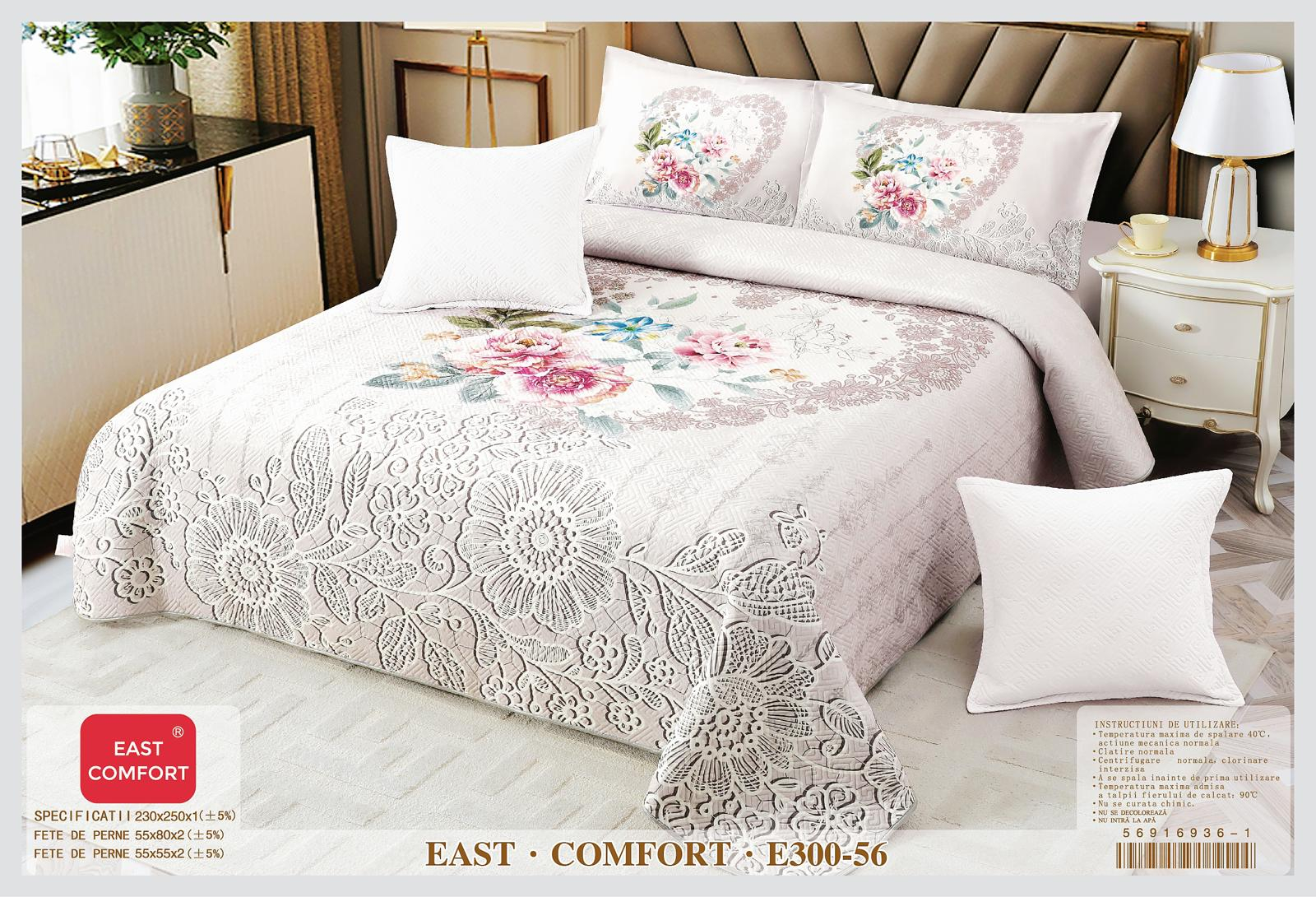 Cuvertura de pat are doua fete, pe o parte este din catifea, iar pe cealalta parte este din bumbac maltasat, este atent lucrata, avand cusaturi realizate la cele mai inalte standarde.