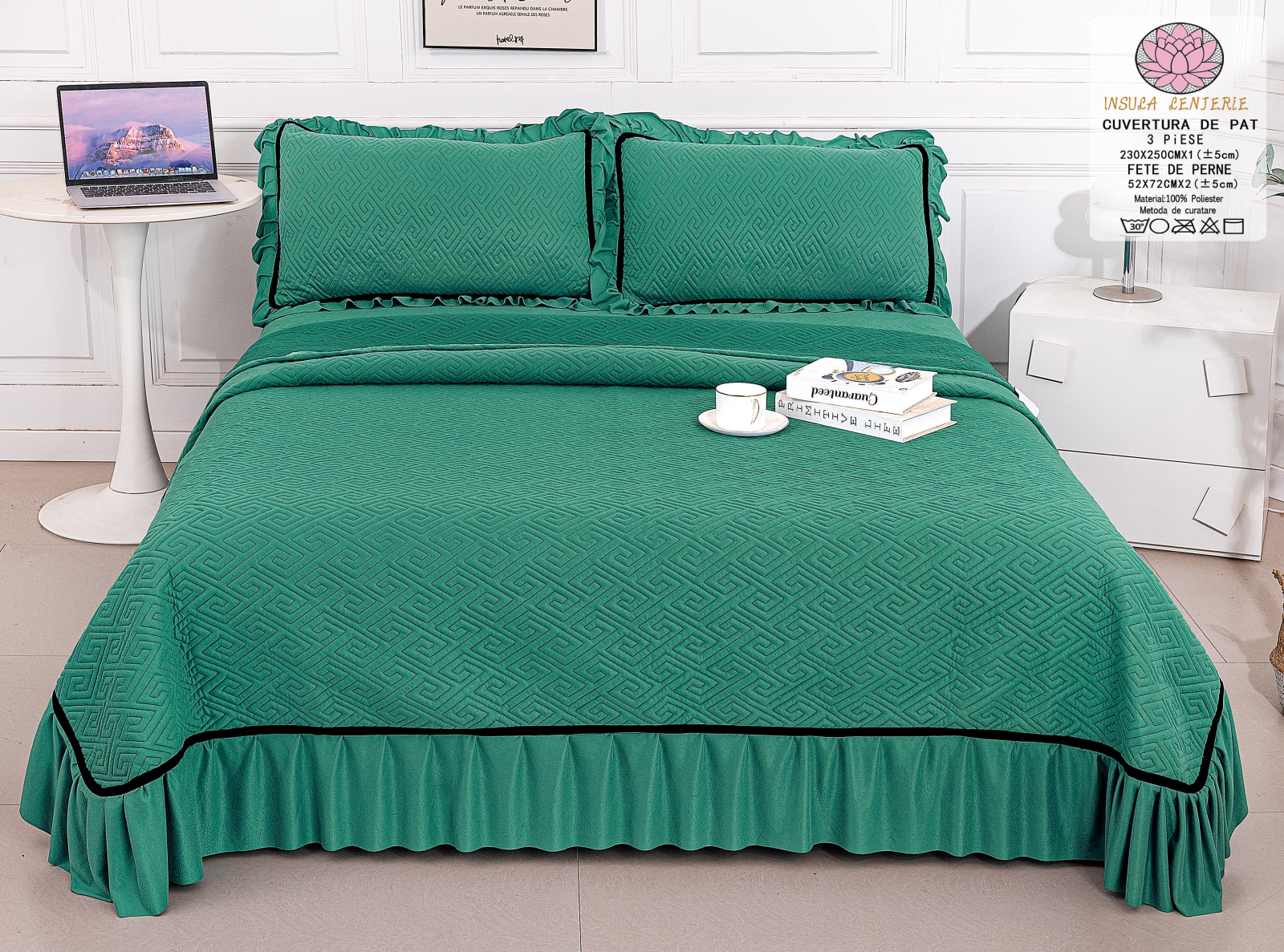 Cuvertura Catifea 3 Piese Cu Volanase - Verde