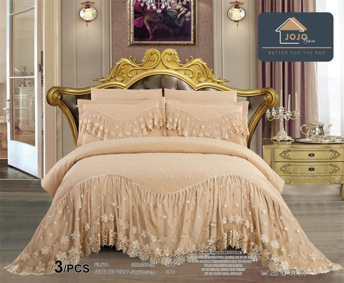 Datorita dantelei rafinate, indiferent de culoare, cuvertura ofera un plus de eleganta dormiorului.