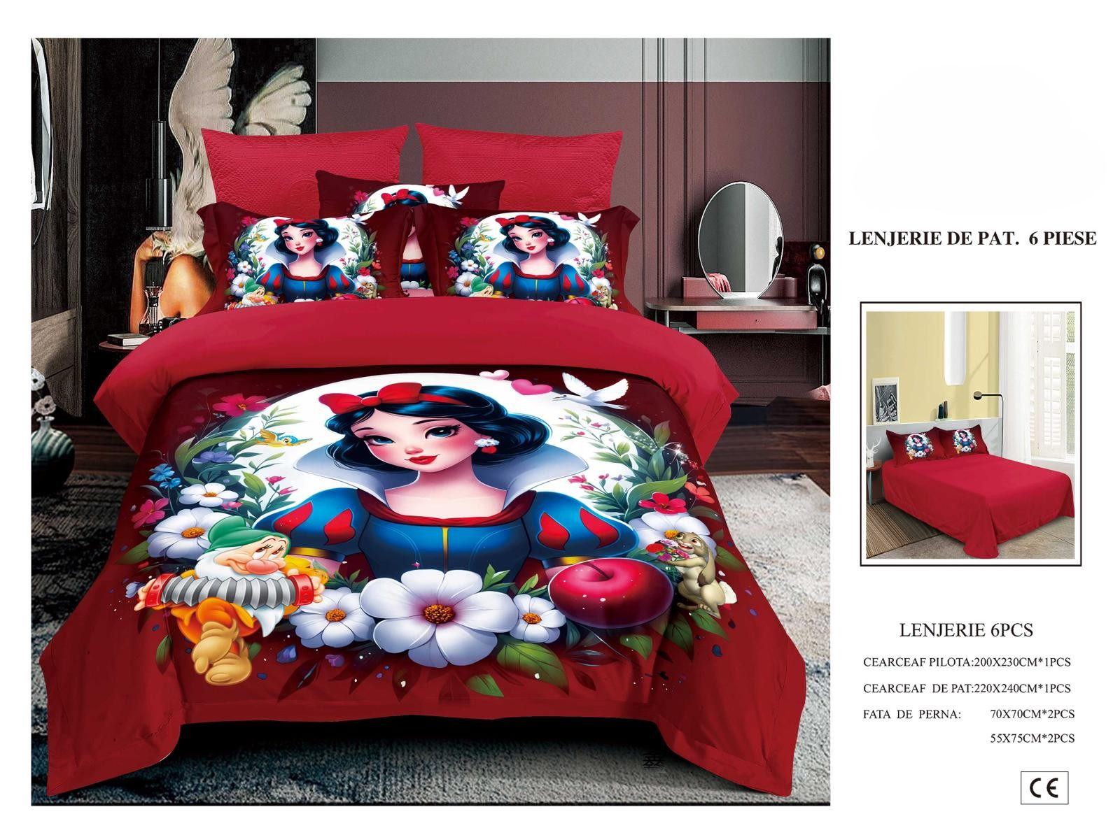 - cearceaf pentru pat 220x240cm - cearceaf pentru pilotă 200x230cm - două fețe de pernă 55x75cm - două fețe de pernă 70x70cm