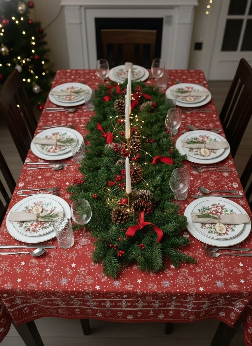 Fata de masa cu motive pentru Craciun, confectionata din Bumbac 100%