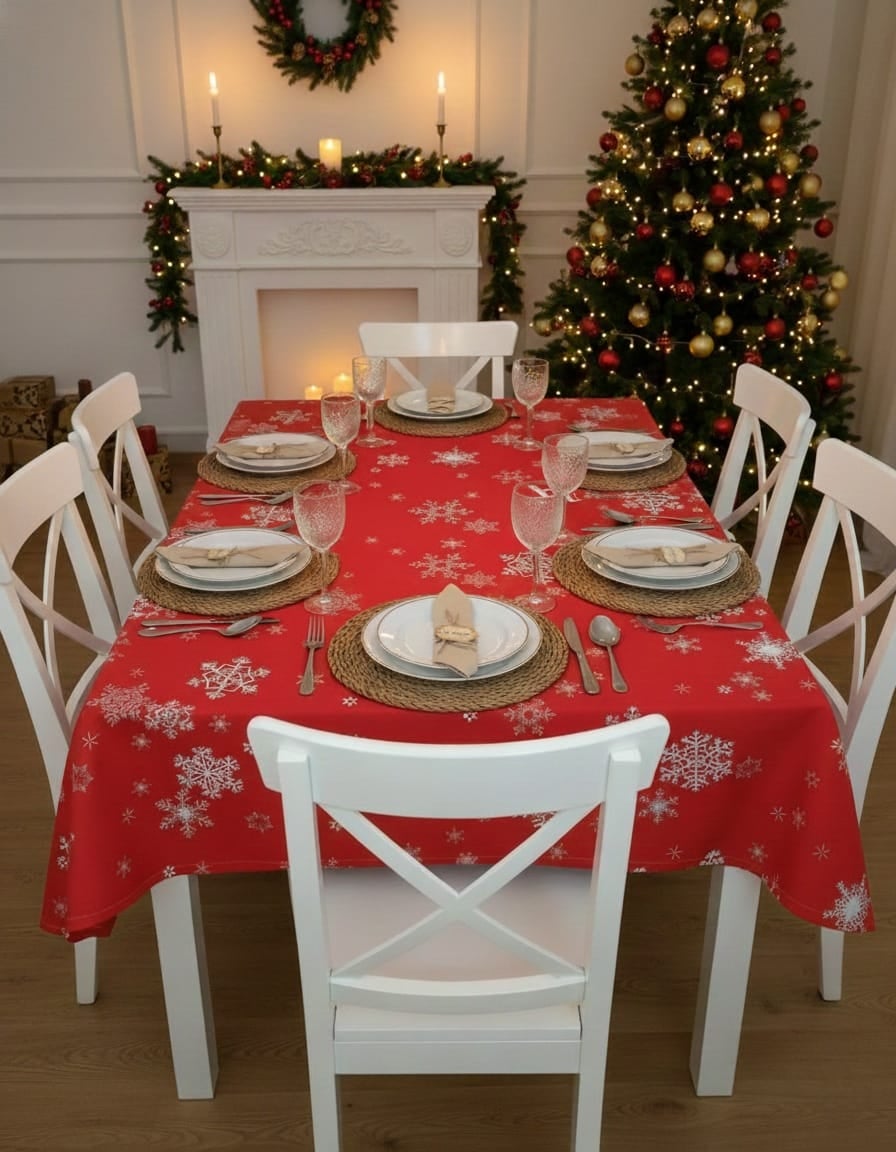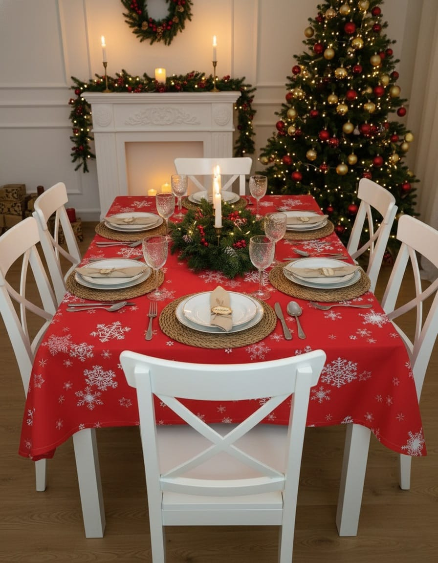 Fata de masa cu motive pentru Craciun, confectionata din Bumbac 100%