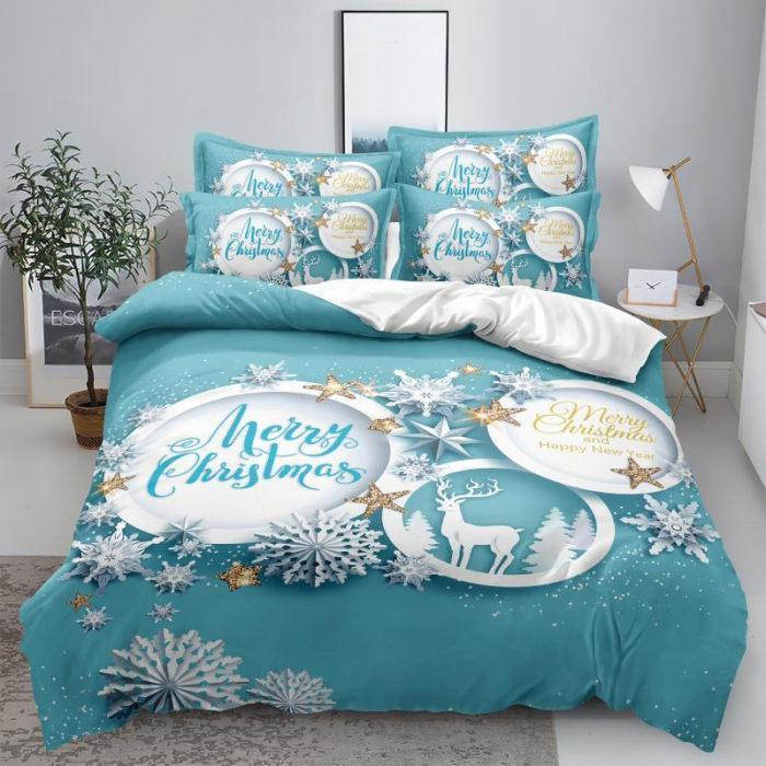 Lenjerie De Pat Finet Premium Craciun 6 Piese - Merry Christmas And Happy New Year