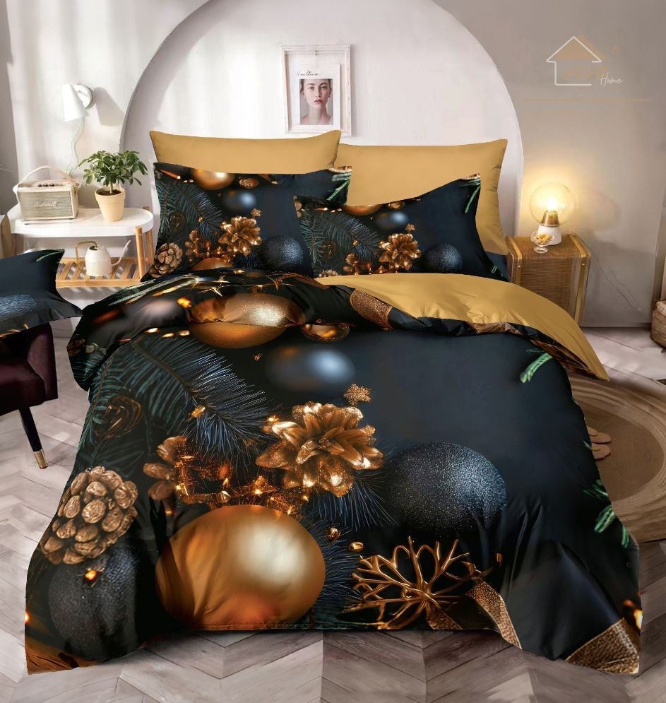 Lenjerie De Pat Finet 6 Piese Cu Elastic 5D Model Craciun - Globuri Aurii
