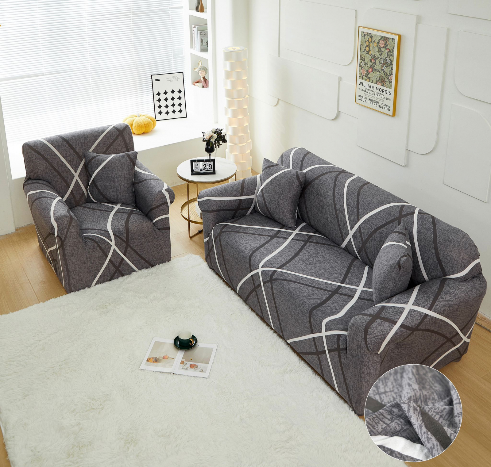 Husa Elastica Pentru Fotoliu/ Canapea/ Coltar - Gri Dungi