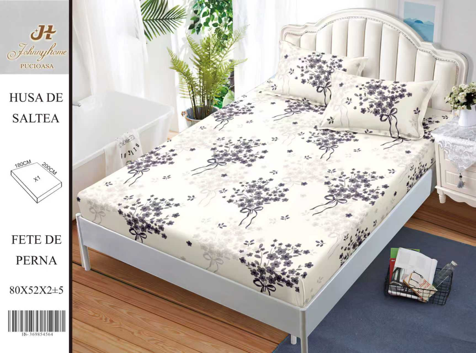 Husa de protectie cu elastic pentru saltea, confectionata din bumbac satinat, ideala atat pentru protectia saltelei, cat si pentru a fi folosita ca cearceaf de pat. Material potrivit pentru pentru orice sezon, permitand pielii sa respire datorita texturii bumbacului. Aceasta vine insotita de doua fete de perna, alcatuind un set potrivit pentru orice tip de pat. Culori rezistente la spalat, care nu se decoloreaza in timp, non-alergice.