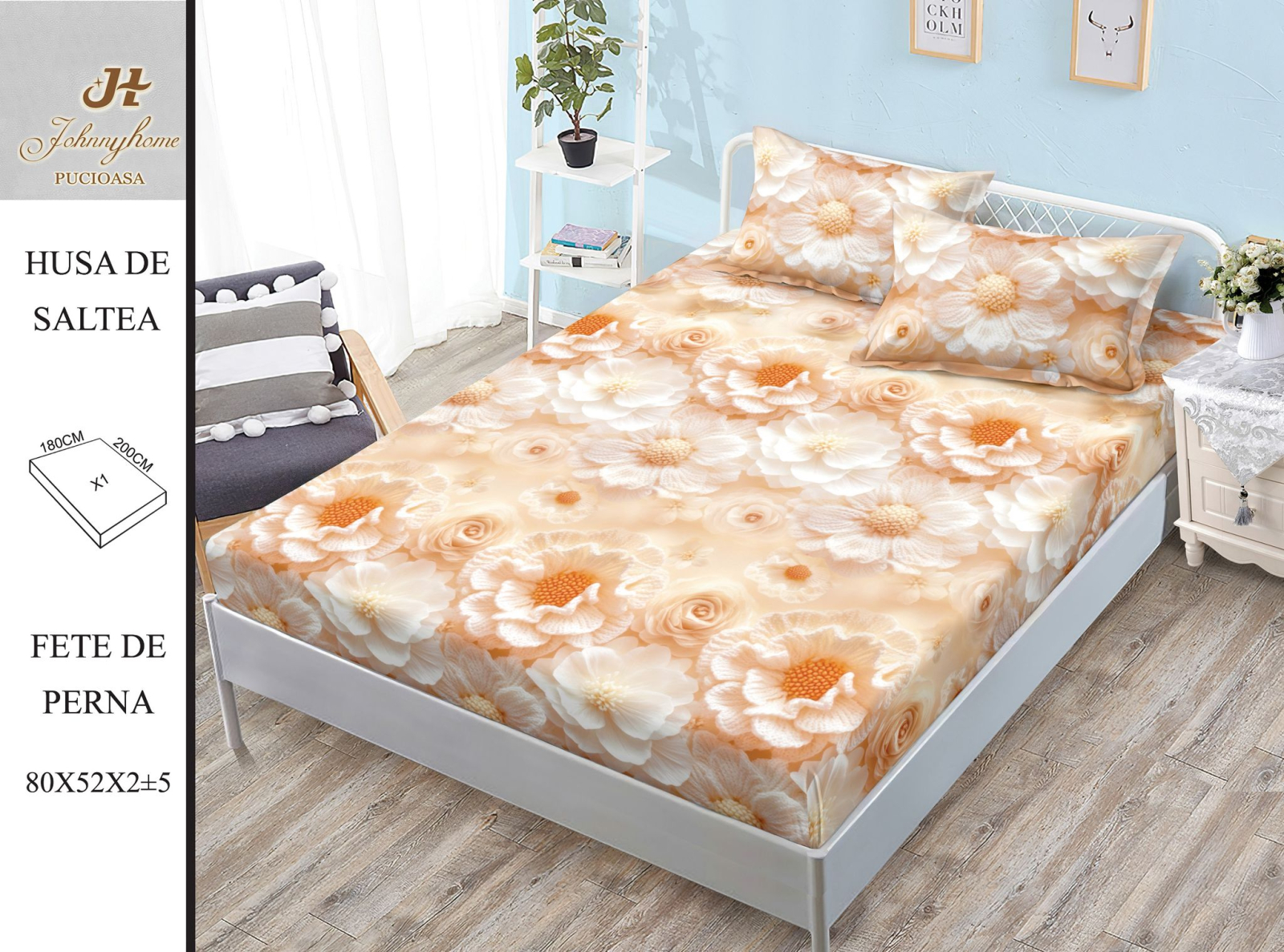 - cearceaf cu elastic pentru saltea de 180x200x20cm (perfect intins) sau 160x200x20cm (putin mai lejer)
