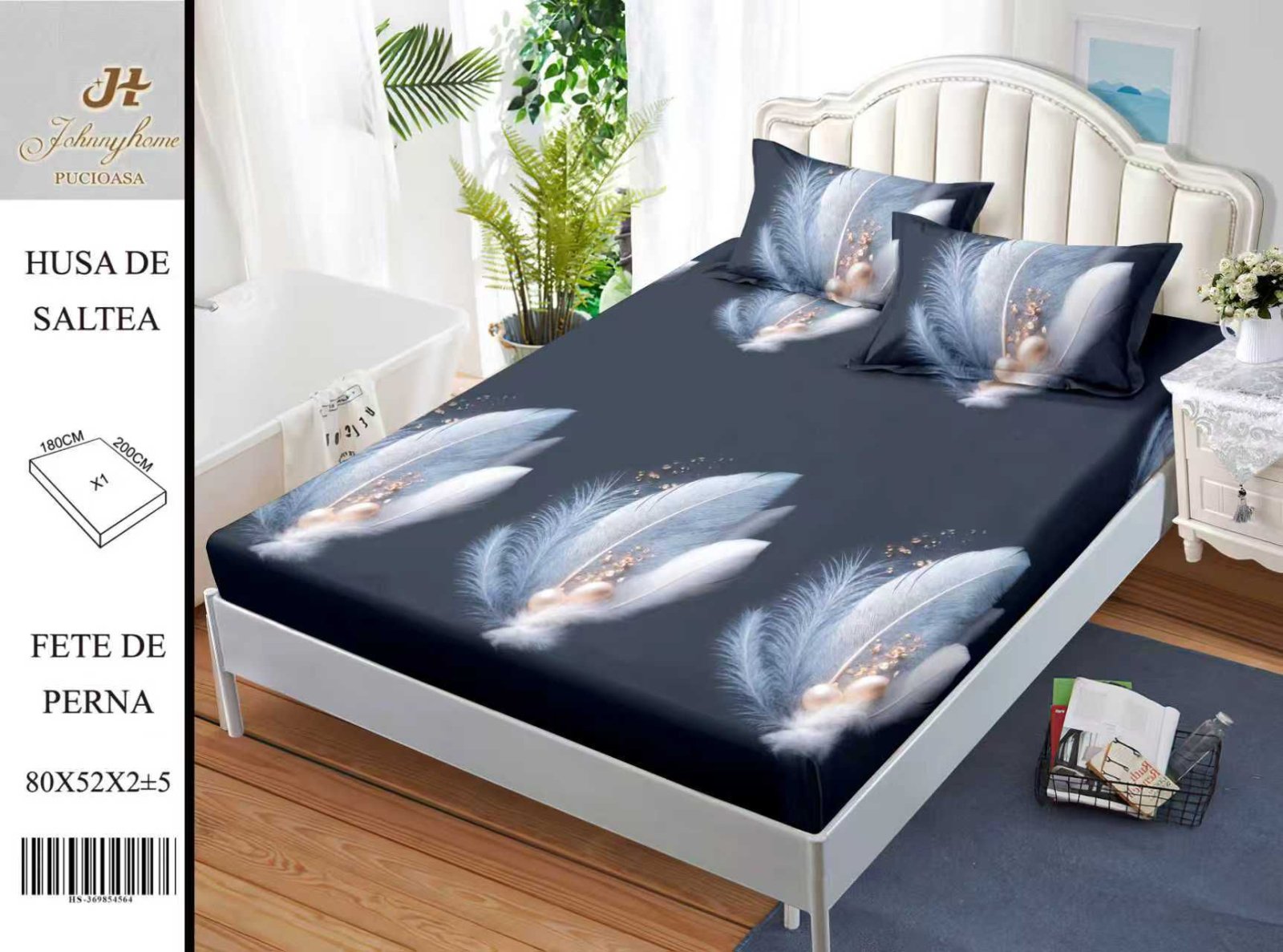 Husa Din Bumbac Satinat Cu Elastic Si Fete De Perna 180x200cm - Pene Si Perle