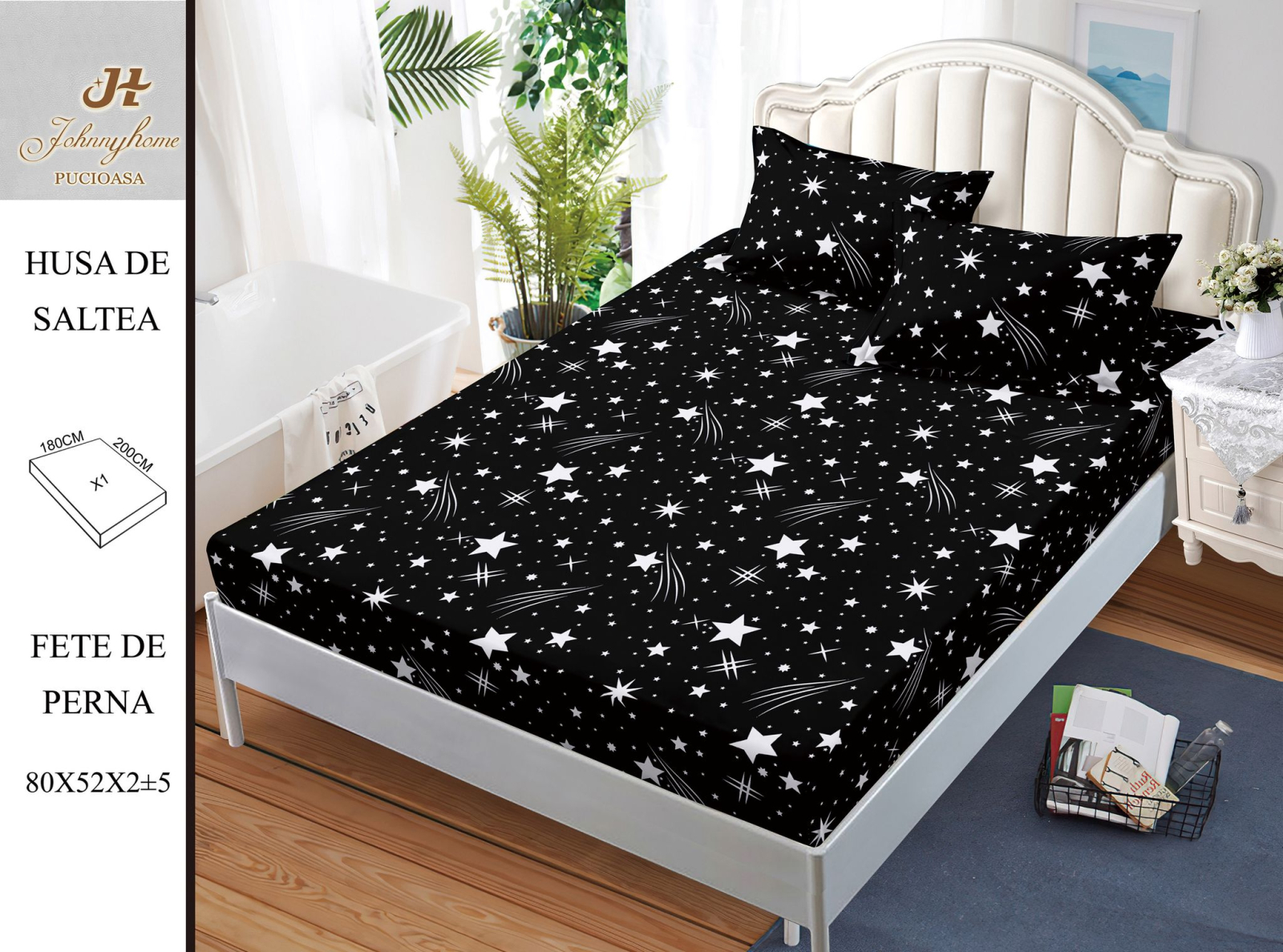 Husa Din Bumbac Satinat Cu Elastic Si Fete De Perna 180x200cm - Stele Si Comete