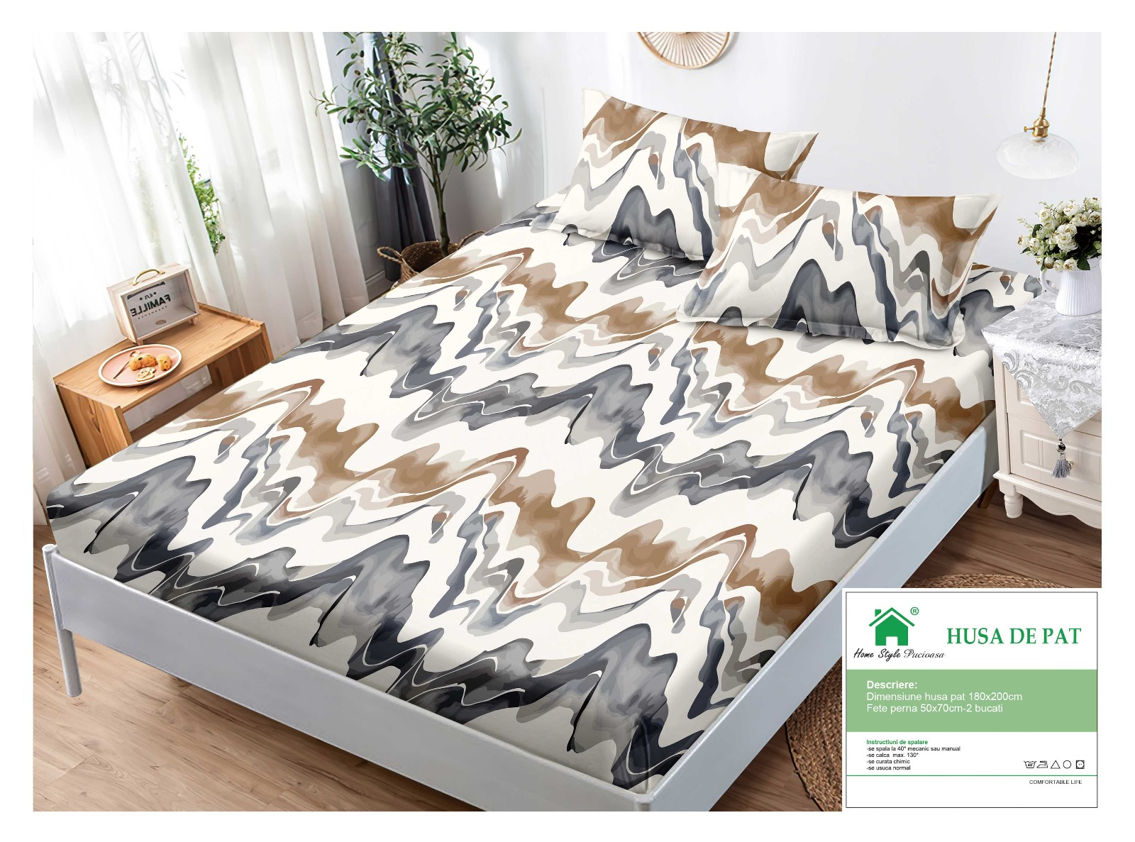 Husa cu Elastic si Fete de Perna Din Finet 180x200cm - Abstract