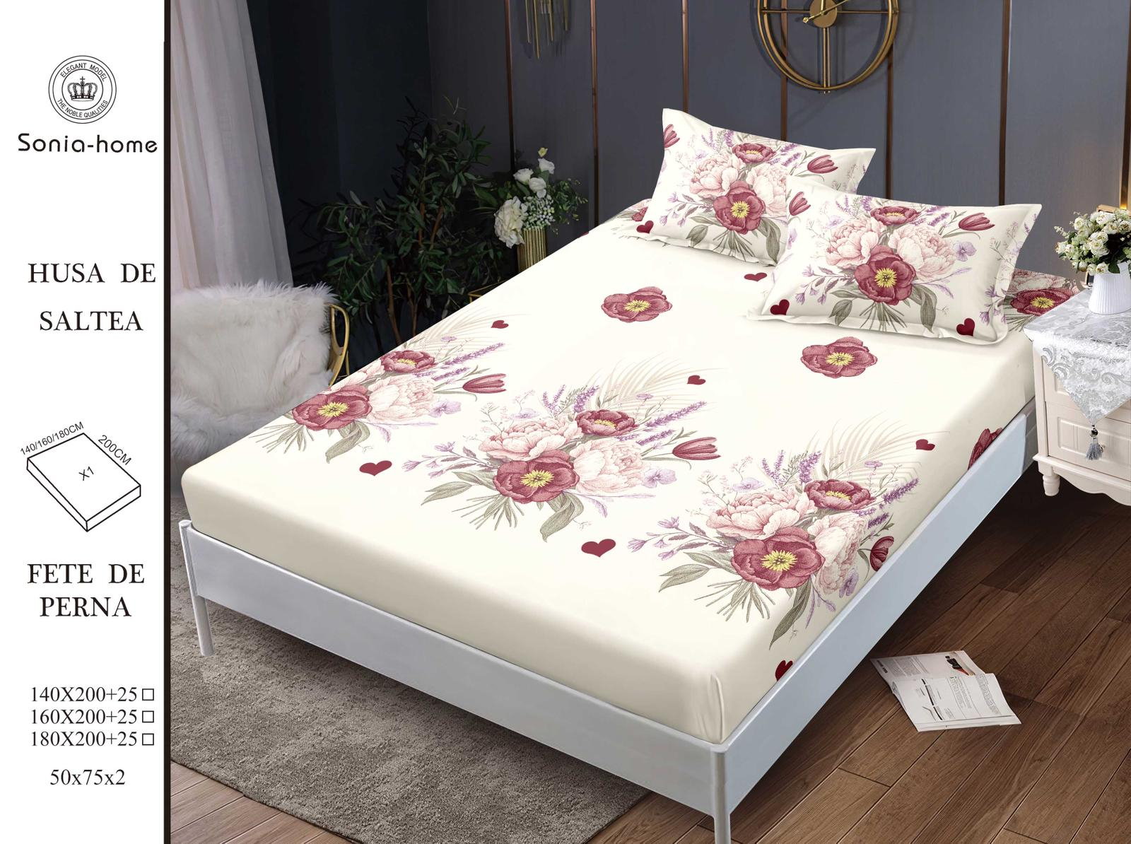 - cearceaf cu elastic pentru saltea de 180x200x25cm (perfect intins) sau 160x200x25cm (putin mai lejer)