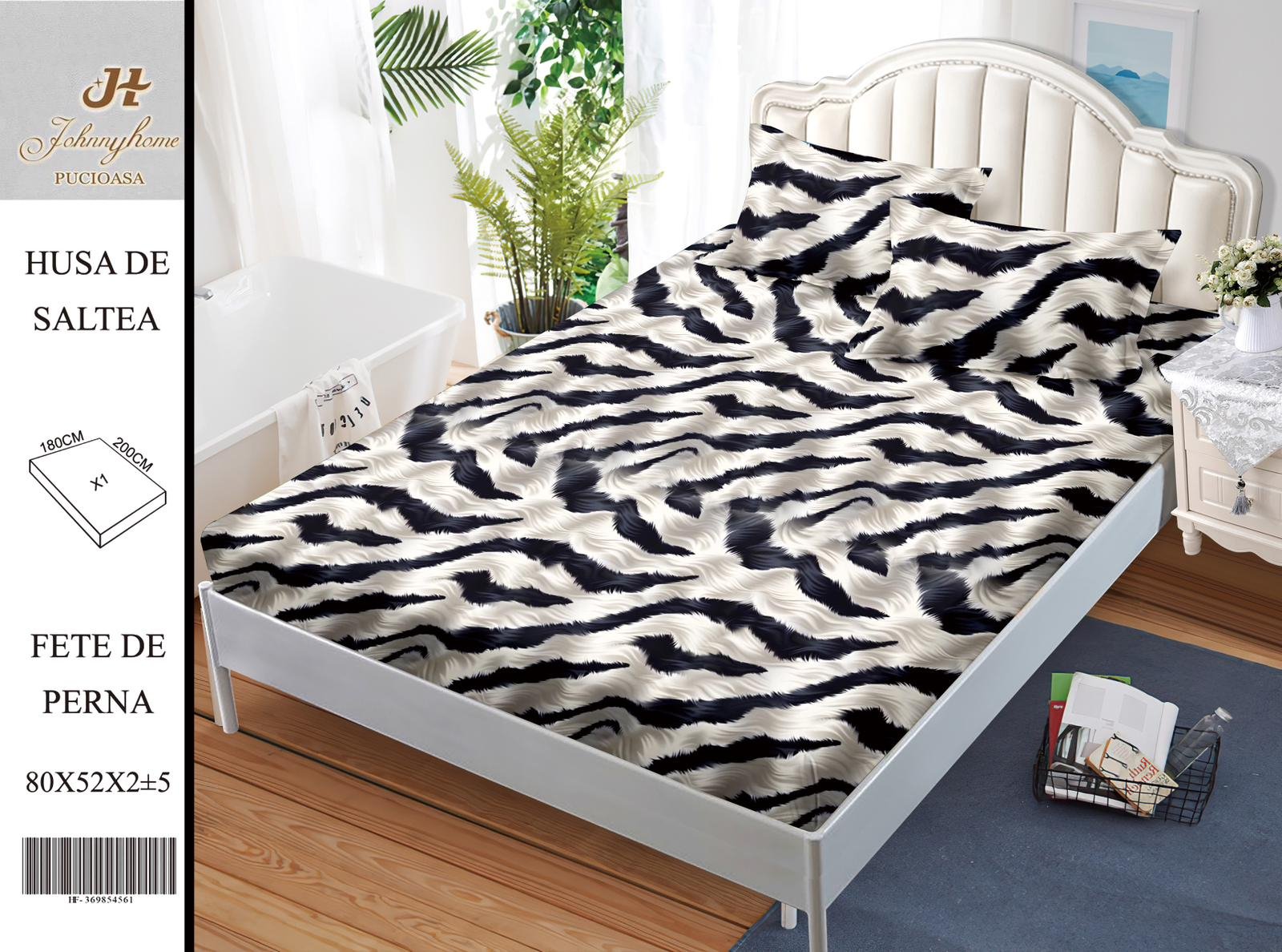 - cearceaf cu elastic pentru saltea de 180x200x20cm (perfect intins) sau 160x200x20cm (putin mai lejer)