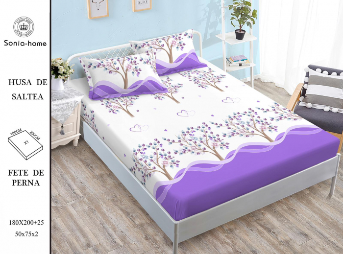 Husa de protectie cu elastic pentru saltea, confectionata din bumbac tip finet, ideala atat pentru protectia saltelei, cat si pentru a fi folosita ca cearceaf de pat. Material potrivit pentru pentru orice sezon, permitand pielii sa respire datorita texturii bumbacului. Aceasta vine insotita de doua fete de perna, alcatuind un set potrivit pentru orice tip de pat.